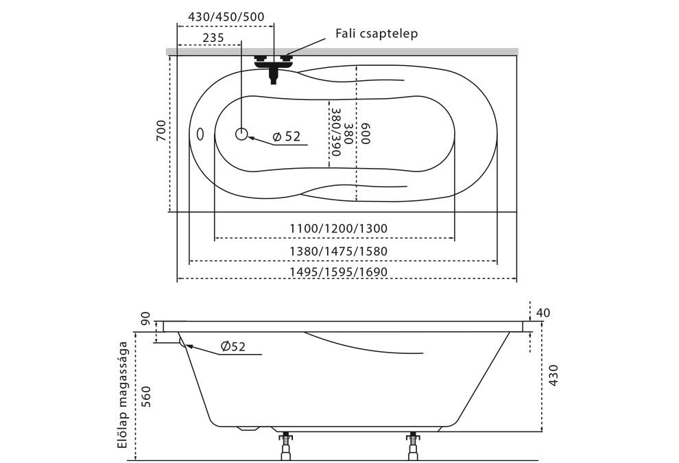 Rovná vaňa Nora - Technické výkresy | Stiahnuť ![]() |