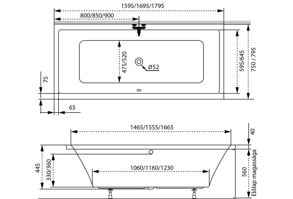 Rovná vaňa Sabina - Technické výkresy | Stiahnuť ![]() |